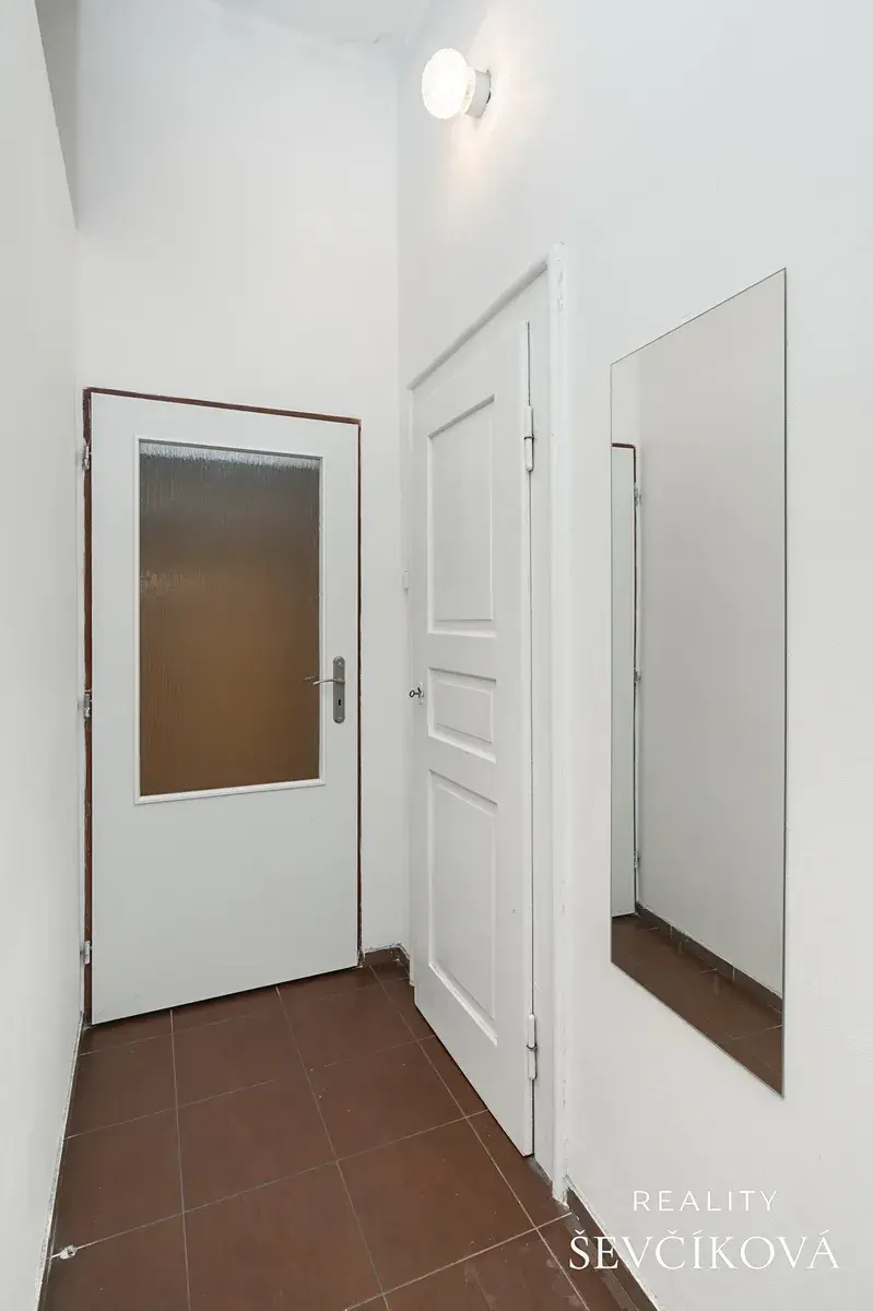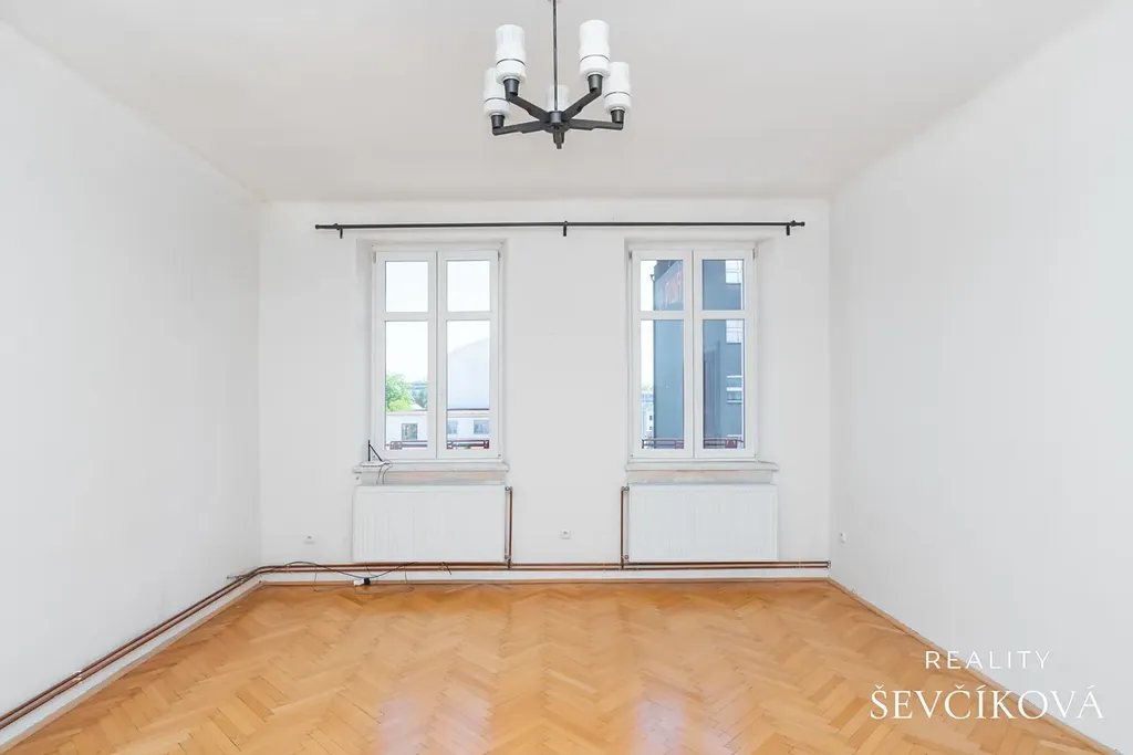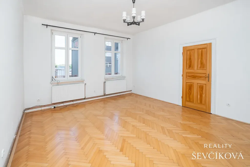 Jednotka si zachovala původní prvorepublikový charakter – dřevěné podlahy, renovované interiérové dveře a vysoké stropy (3,10 m) dodávají bytu jedinečnou atmosféru.