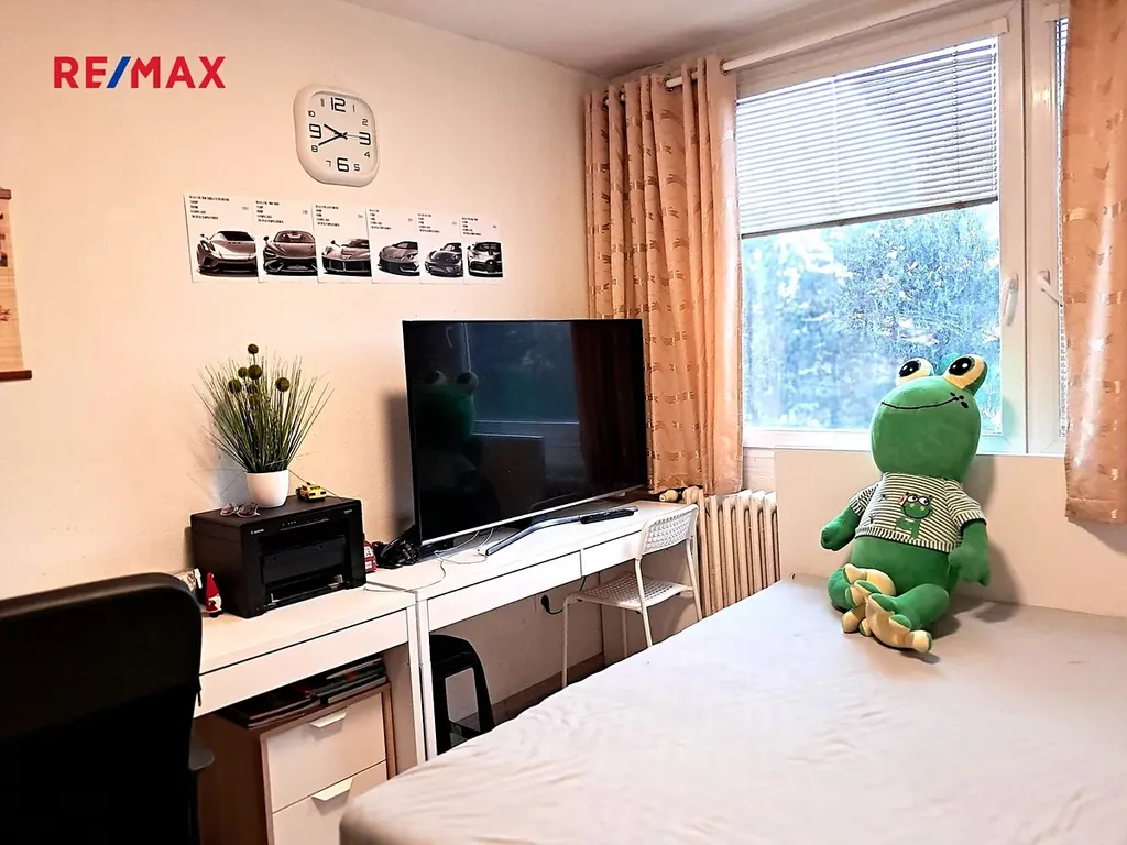 Byt se nachází na 2. nadzemním podlaží 12ti patrové budovy, dispozice bytu je 3+1: dvě ložnice, obývací pokoj s výstupem na lodžii, samostatná kuchyně, koupelna s vanou a WC. Ve vstupní hale je malá komora. K bytu náleží sklípková komora cca 2 m². Užitná plocha je téměř 70 m² a lodžie je velmi prostorná s zasklením. Majitelé preferují nájemce rodinu s dlouhodobým nájmem. Byt je plně vybaven: pohovka, televize, kuchyň s plynovým sporákem, lednice, jídelní stůl a židle pro rodinu.