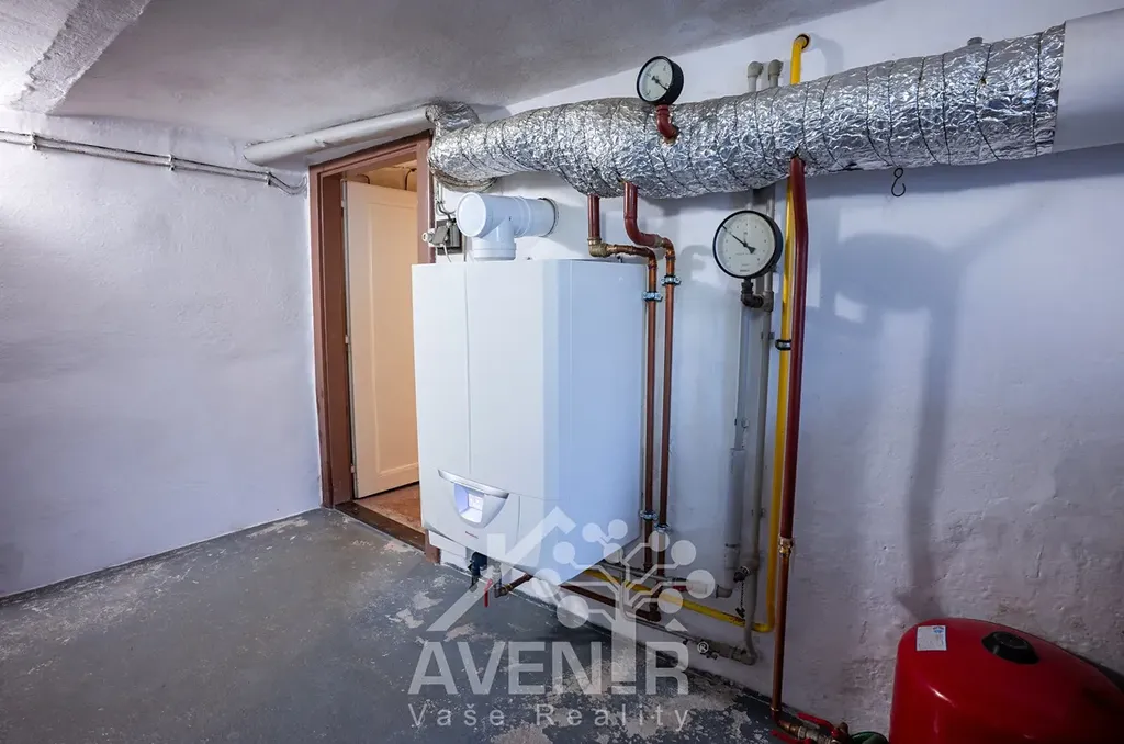 Inženýrské sítě: veřejný vodovod, elektřina, plyn a kanalizace. Dům je vytápěn plynovým kondenzačním kotlem (instalován 9/2023), který zajišťuje také ohřev vody, rozvody vody jsou v plastu.