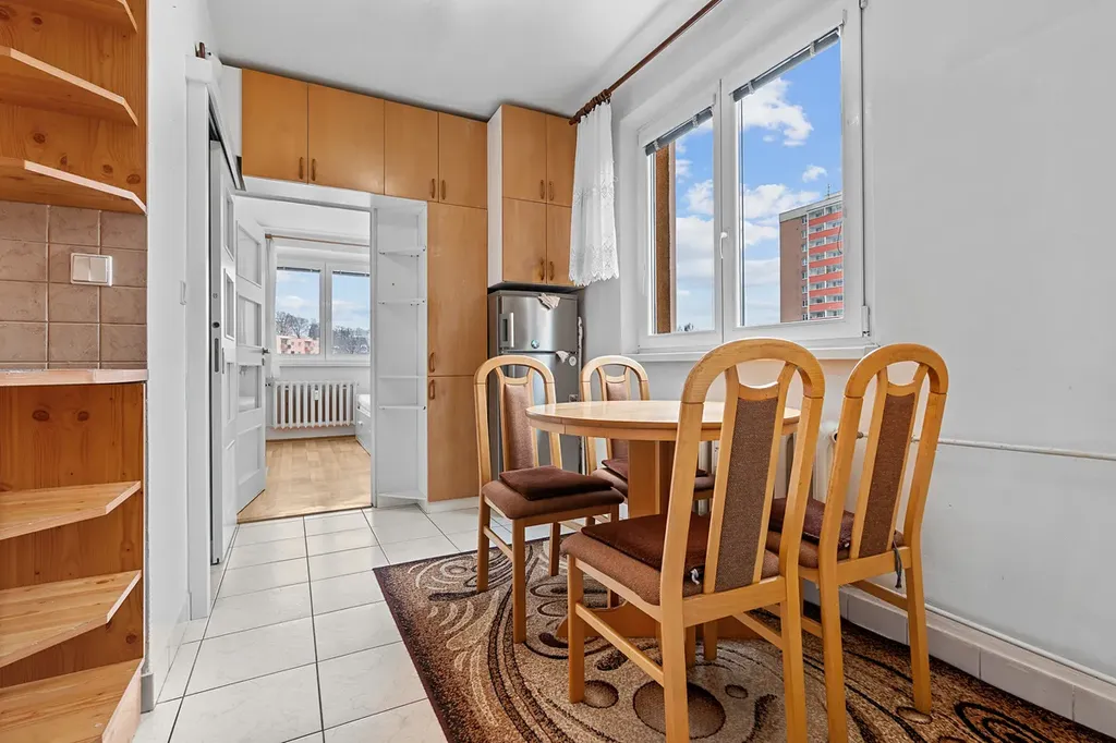 Byt o výměře cca 62 m² je v osobním vlastnictví a nachází se ve 3. nadzemním podlaží panelového domu s výtahem. Díky své dispozici působí velmi prostorně a vzdušně. Nabízí dva neprůchozí pokoje, samostatnou obývací část, kuchyni vybavenou spotřebiči s jídelnou, koupelnu s vanou a pračkou, samostatné WC a praktickou předsíň s úložnými prostory.
