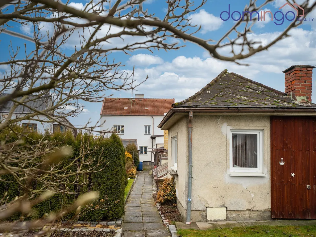 Nemovitost disponuje dvěma samostatnými bytovými jednotkami a rozlehlým pozemkem s přístupem ze dvou ulic.