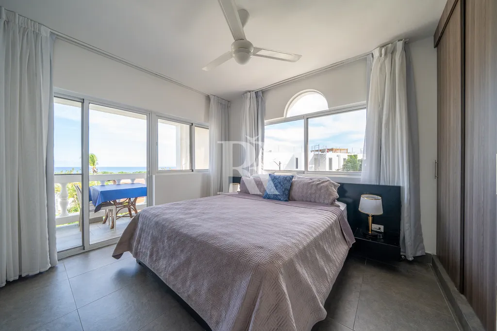 Vnitřní dispozice nabízí 2 samostatné ložnice - obě s výhledem na oceán, 2 koupelny, prostorný obývací pokoj s kuchyňským koutem a terasu.