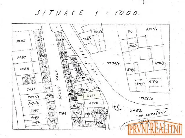 - na ulici Dolní Valy, šířka pozemku je 7 metru