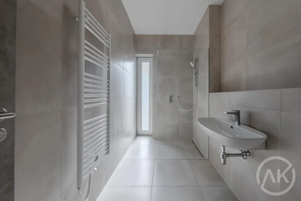 - v koupelně je walk in sprchový kout a okno. Taky se vám tam vejde pračka a sušička. Líbí se mi oddělená toaleta,