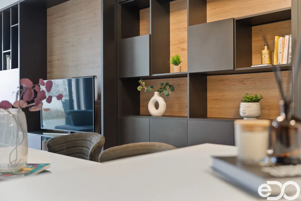 Nejedná se o standardní developerské provedení. Byt byl kompletně řešen s profesionální interiérovou designérkou a zahrnuje řadu nadstandardních prvků a příplatkových materiálů, které posouvají úroveň bydlení o několik tříd výš.