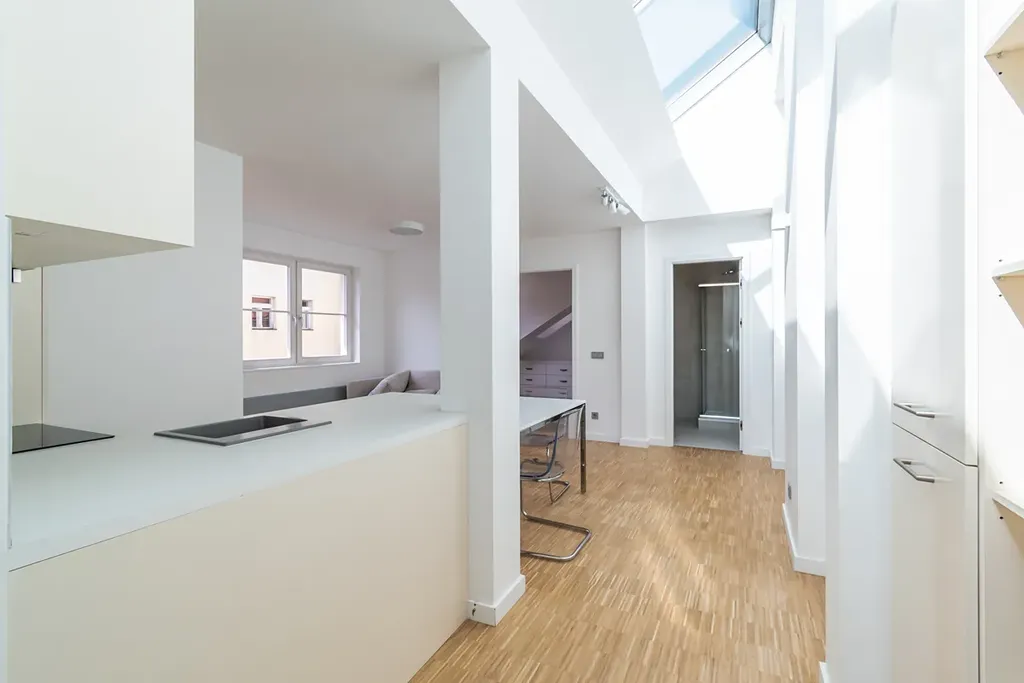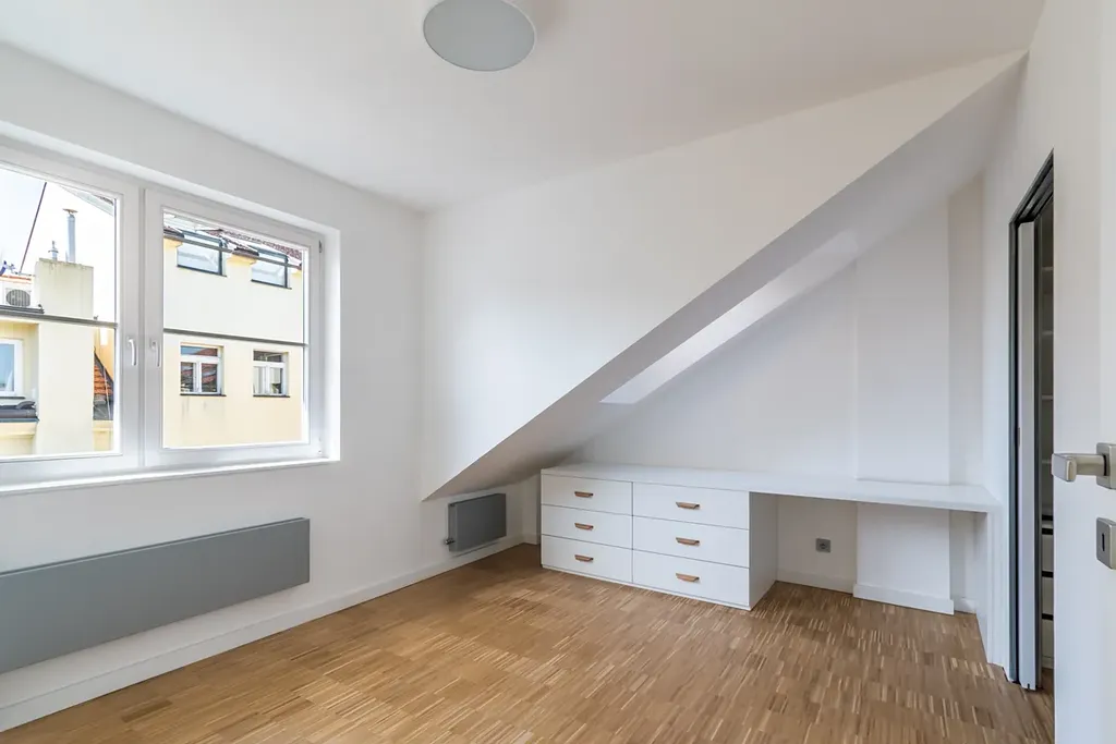 K dlouhodobému podnájmu Vám nabízíme úplně nový byt po kompletní rekonstrukci. v historickém centru Prahy. Byt je velice světlý a vzdušný, díky množství oken. Dispozice bytu je 2+kk, výměra 48 m2. Byt se nabízí téměř kompletně zařízený: vestavěný nábytek - šatní skříně, pohovka, postel, jídelní stůl se židlemi. Byt je umístěn ve 4. patře cihlového domu bez výtahu.