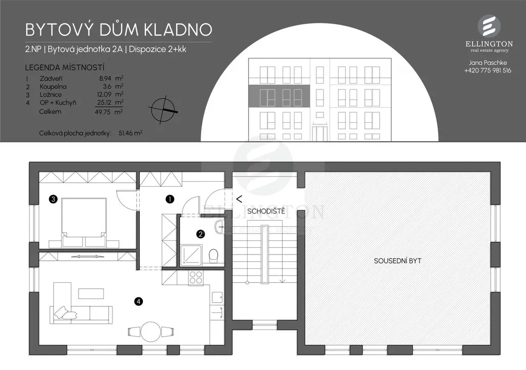Tímto bychom vám chtěli nabídnout byt 2+kk o celkové rozloze 51,4m2, který je součástí 6-ti bytů v rezidenčním projektu U zámku v Zádušní ul. Kladno, který se nachází přímo v centru Kladna, v klidné části mimo hlavní silnici.