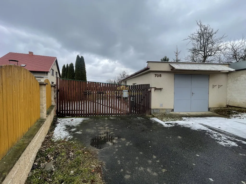 Rodinný dům je situován na pozemcích o celkové rozloze 2.504 m2. Garáž samostatně stojící u vjezdu na pozemek, podsklepená, možnost parkování i na rozlehlém pozemku kolem domu. V zadní části zahrady se nachází původní hospodářské stavby. Příjezd k pozemku je z obecní komunikace. Pozemek je oplocený.