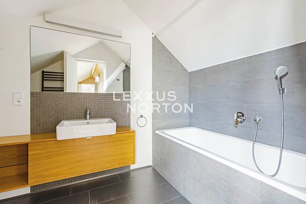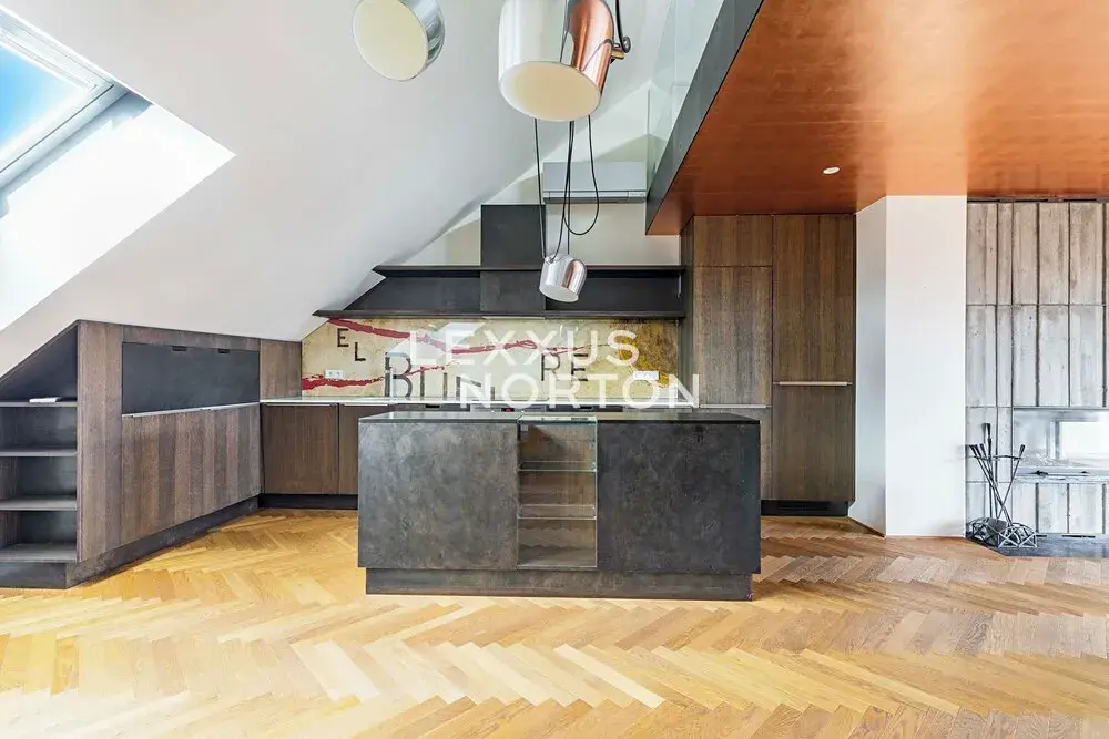 Byt je plně klimatizovaný, střešní okna jsou elektronicky ovládaná a k bytu náleží také terasa (9,5 m2). Interiér bytu dotvářejí kvalitní dřevěné parkety a vkusně zvolené tapety, které celému prostoru dodávají elegantní atmosféru. O bezpečnost se stará alarmový systém.