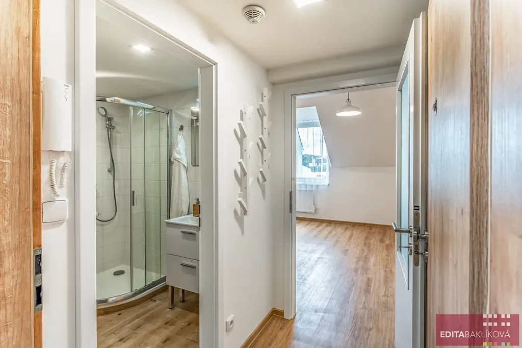 Byt je v 2. NP kvalitně zrekonstruovaného domu (rekonstrukce v r. 2021), s malým dvorkem, který je k dispozici nájemníkům v domě.