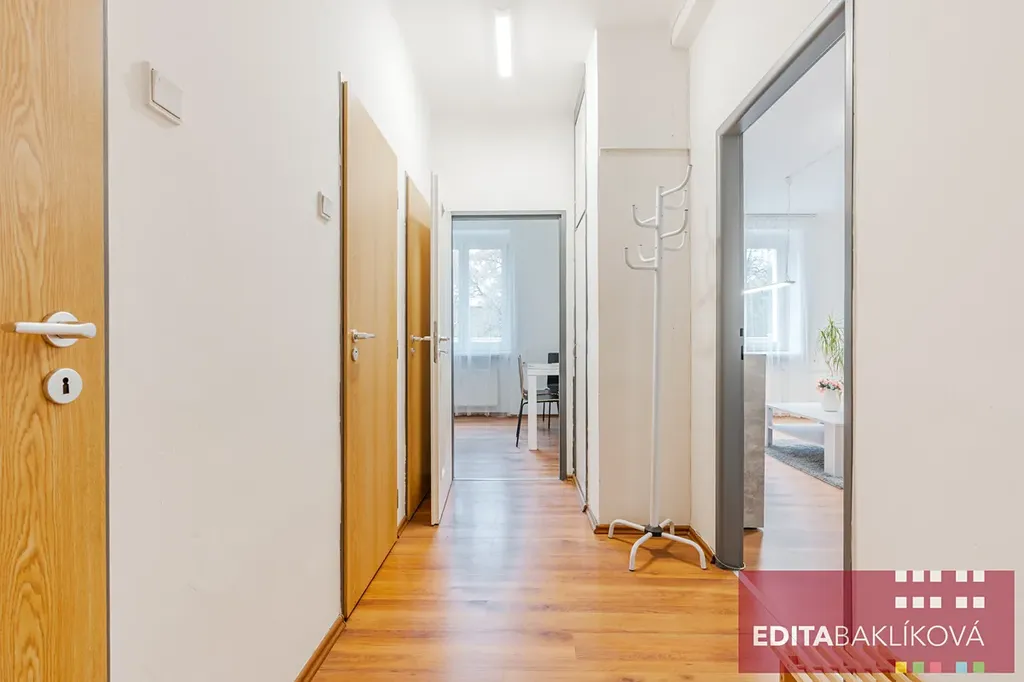 Před okny bytu je úzký balkon vhodný pro umístění truhlíků a květin ( přímý vstup z tohoto bytu na balkon není – sousedé si vstupy doplnili a oddělili si minibalkonky).