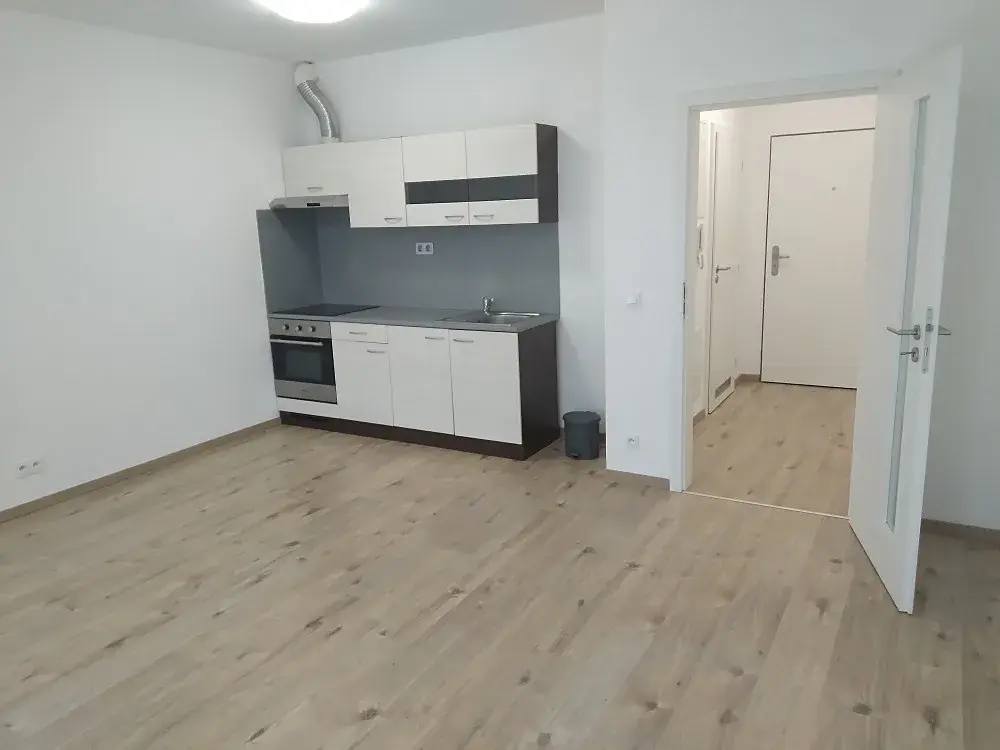 Jednotka se skládá z malé vstupní chodbičky, koupelny se sprchovým koutem s umyvadlem a WC, dále z místnosti (24,1 m2) s kuchyňským koutem a s předzahrádky. Jednotka je částečně vybavena tj. kuchyňská linka vč. pracovní desky a zadového panelu, se sklokeramickou varnou deskou a vestavnou elektrickou troubou a digestoří.