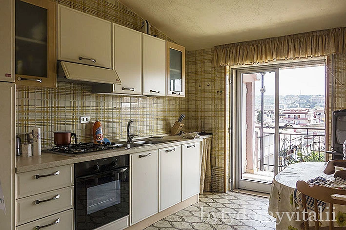 Dům, ve kterém se byt nachází, je v krásné rezidenční čtvrti, jedné z nejhezčích ve Scalea, na Via Michelangelo. Ze dvou balkonů ve čtvrtém patře, je nádherný výhled na hory a moře. V bytě jsou 3 ložnice, postele a další nábytek. Plně vybavená kuchyň s myčkou a kuchyňskými spotřebiči, je velkou výhodou. K moři dojdete klidnou ulicí během 3 minut. Poblíž domu jsou kavárny, restaurace a obchody. V domě není výtah.