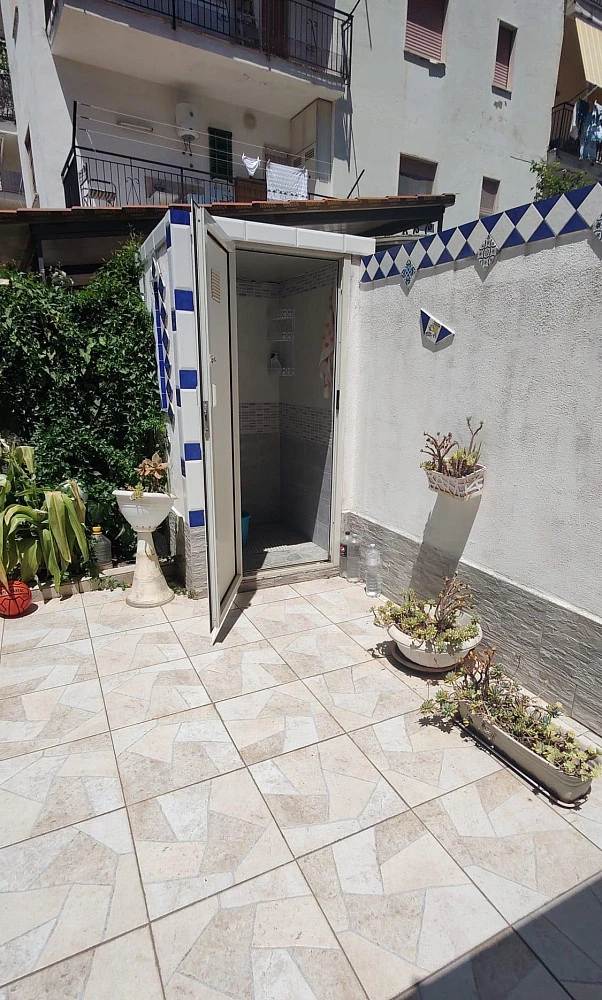 Krásný přízemní byt (60 m²) s obrovskou terasou (90 m²) s fíkovníky a citrusy, které vás budou chránit před sluncem v horkých letních dnech. Byt je díky topení v hodný k celoročnímu bydlení. Je napojený na sytém "chytrá domácnost". Nachází se v centru, kousek od nádraží, kaváren a onchodů. K moři dojdete pěšky přibližně za 17 minut.