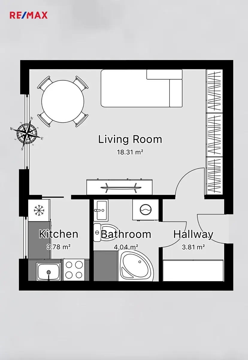 Byt se prodává kompletně zařízený: k dispozici je pohovka, vestavěná skříň v pokoji i předsíni, pračka v koupelně, kuchyňská linka vybavená troubou, lednicí s mrazákem. Komfort bydlení zvyšují také venkovní elektrické žaluzie.