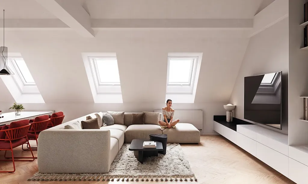 Byt č. 14 - 3+kk, 82 m2 + balkon 6 m2 + terasa 28 m2. Parkovací stání ve dvoře (dlouhodobá nájemní smlouva). Předpokládané dokončení léto 2026, k nastěhování podzim 2026.