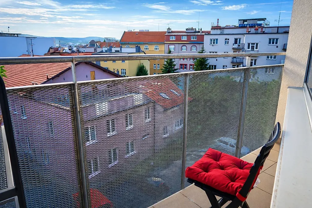 Součástí bytu je i balkón, odkud si můžete vychutnat ranní kávu s hezkým výhledem.