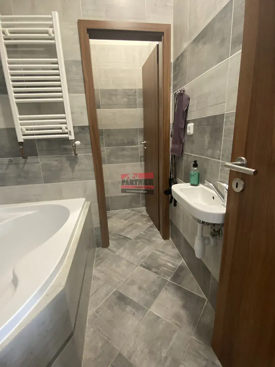 Dispozice bytu: pokoj s kuchyňským koutem včetně kuchyňské linky s varnou deskou a troubou, ložnice, koupelna s vanou a samostatná toaleta.