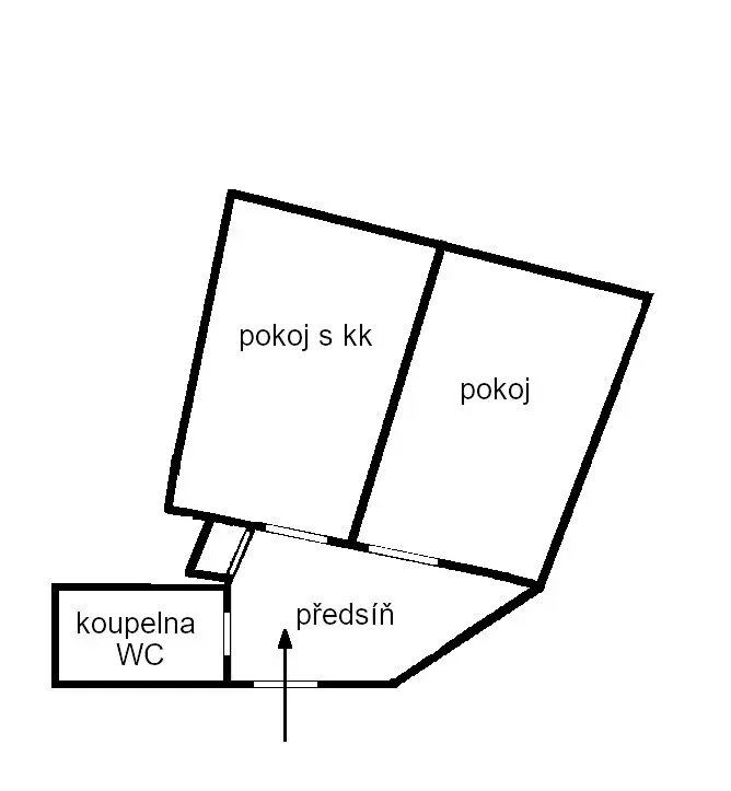 Dispozice bytu – pokoj s kuchyňským koutem, ložnice, chodba, koupelna se sprchovým koutem a WC, komora. Součástí bytu je vybavená kuchyňská linka, elektrický sporák s troubou, lednice, mikrovlnná trouba. V koupelně je pracka. V bytě je elektrický kotel, boiler.