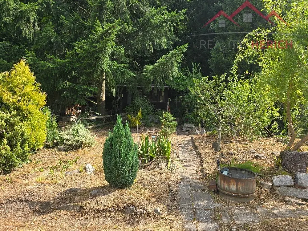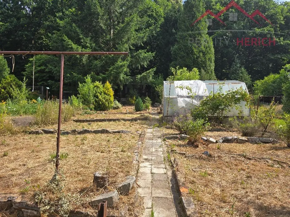 K chatě náleží zahrada o rozloze 330 m2, která je v pronájmu od města.