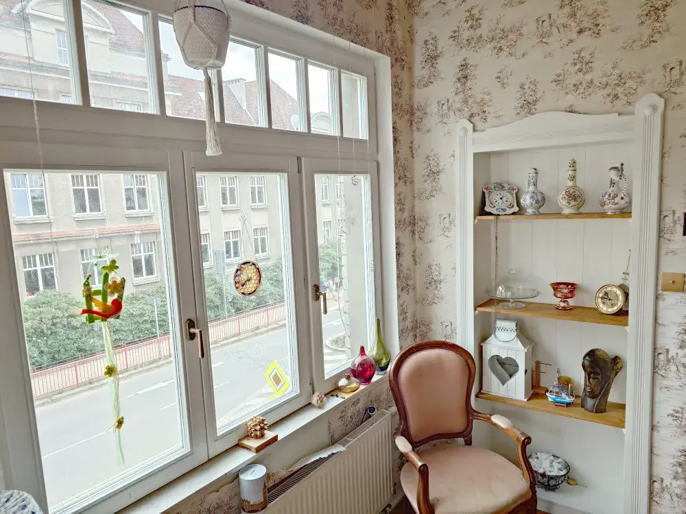 Samotný byt se nachází ve druhém nadzemním podlaží a jeho okna jsou orientována do ulice Husova a Vítězná. Byt prošel také postupnou rekonstrukcí – kuchyně – cca 5 let zpětně – masiv, spotřebiče Siemens a Bosch, elektřina – cca 10 let zpět vč. přípravy na EZS, nový plynový kotel a rozvody tepla, zaveden optický kabel a kabelová TV, výměna oken – kopie původních oken, trojskla, cca 3 roky zpětně, dveře – kompletně zrestaurováno. Vše bylo provedeno s důrazem na zachování původního vzhledu bytu i domu.