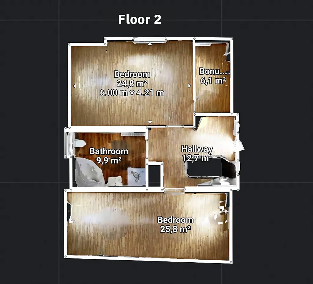 Interiér domu je naskenovaný, využijte virtuální prohlídku umístěnou ve fotogalerii. Fotografie s nábytkem jsou vytvoření pomocí AI a slouží k lepší představě o využití interiéru.