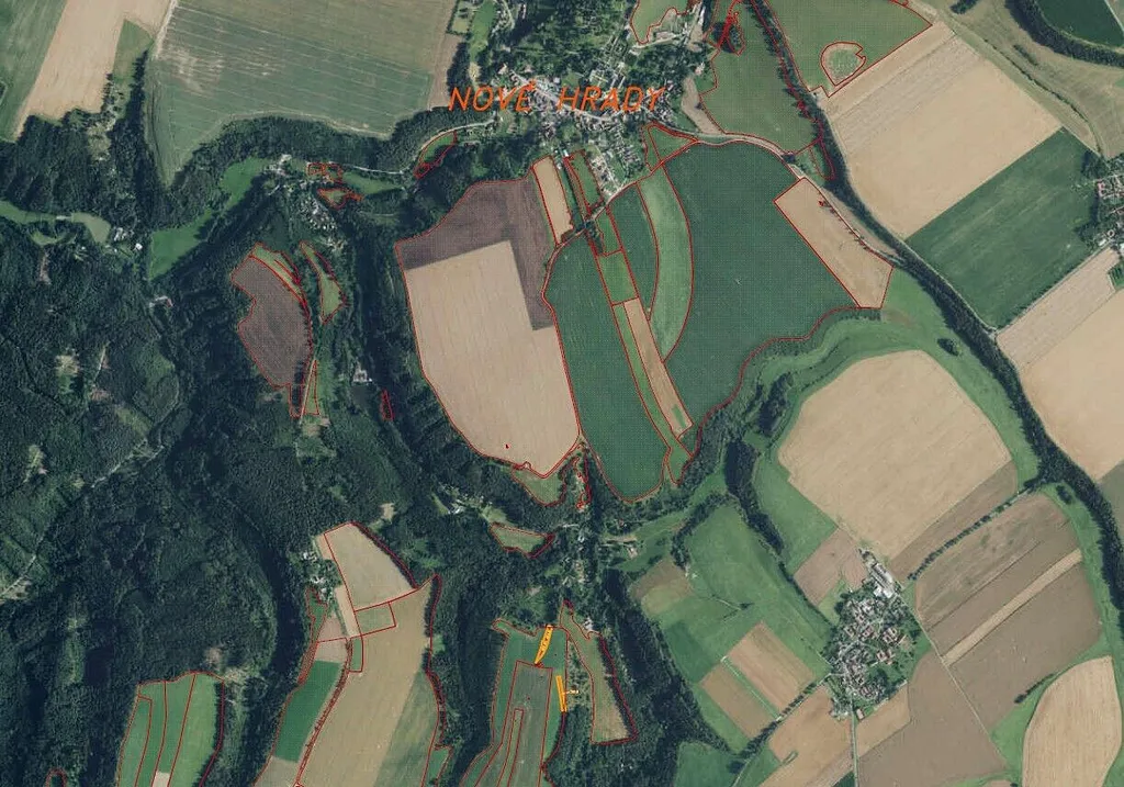 Nabízíme k prodeji tři pozemky o celkové výměře 2 679 m² nedaleko obce Nové Hrady u Skutče. V katastru nemovitostí jsou vedeny jako orná půda a trvalý travní porost. Velká část vyměry je vedena ve veřejném registru půdy LPIS s možností uplatnění dotace.