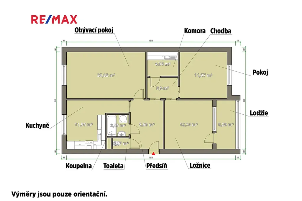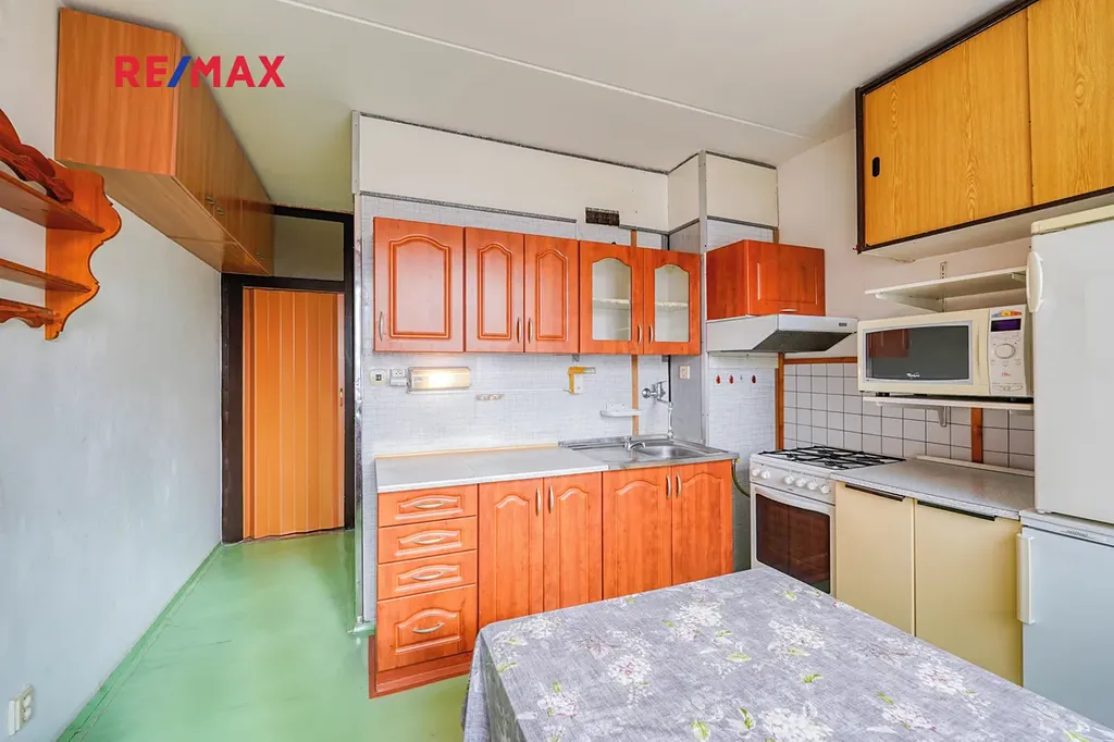 Dispozice bytu o celkové ploše cca 76 m² nabízí praktické rozdělení – prostorný obývací pokoj (20 m²), samostatnou kuchyni s jídelním prostorem, dvě ložnice, komoru, koupelnu, samostatné WC a předsíň. Z jedné z ložnic je vstup na lodžii orientovanou do klidné části. K bytu náleží sklep v přízemí domu a k dispozici jsou i společné prostory (kočárkárna, sušárna). Vytápění je řešeno dálkově.