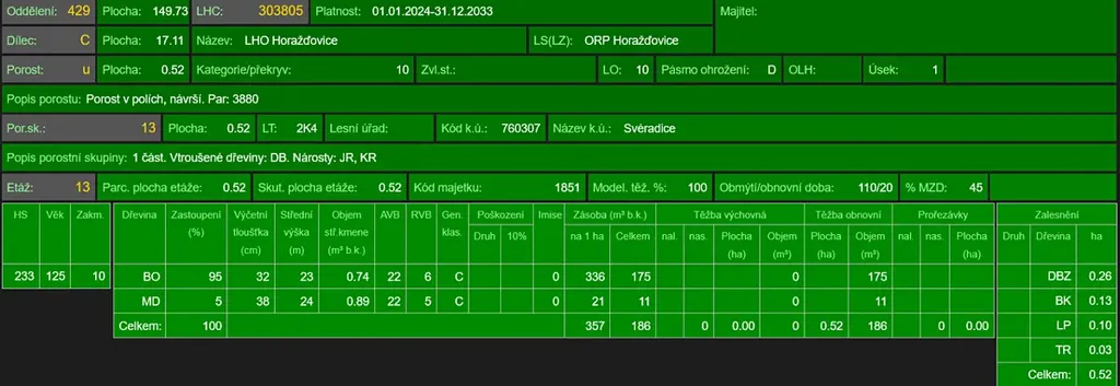 Les je vhodný k těžbě.