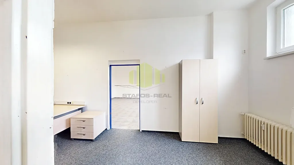 Nabízíme Vám pronájem komerčního prostoru v 1. podzemním podlaží budovy Polikliniky na ulici Janského, Olomouc - Povel. Nabízený prostor se skládá ze čtyř místností a souvisejícího zázemí. Prostor je koncipován tak, že nabízí dva vstupy, první ze společných prostor domu od výtahu do první části vnitřní chodby, druhý samostatný vstup z ulice do první menší místnosti, která může sloužit jako recepce. Z ní je přístup jedněmi dveřmi do dalších dvou menších místností (13,8 a 17,6m2), které mají shodně přístup do vnitřní chodby. Z větší z místností je pak přístup do největší místnosti o ploše 42,8m2, s přístupem taktéž do vnitřní chodby. K dispozici je nábytek dle fotodokumentace. Prostory kanceláří je možnost i částečně či zcela vyklidit a pronajmout prázdné, bez vlivu na cenu pronájmu. Na společné vnitřní chodbě k dispozici sociální zázemí skládající se ze sprchového koutu na jedné oddělené části chodby, vedlejší úklidové místnosti a toalety s umyvadlem. Druhá oddělená část chodby spojuje toto zázemí, velkou místnost a vstup od výtahu a schodiště. Parkování pro klienty zajištěno na veřejných stání kolem polikliniky. Po domluvě lze celý pronajímaný prostor uzpůsobit na míru požadavkům provozu. Součástí polikliniky je lékárna a několik ordinací a další služby (vypsat dostupné z internetu). Poliklinika je hlídána bezpečnostním kamerovým systémem. Úklid společných prostor zajišťuje úklidová služba. Cena pronájmu 29.952,- Kč bez 21% DPH měsíčně, k tomu záloha na energie a služby ve výši 5.000,- Kč. Odměna RK ve výši jednoho nájmu + 21% DPH. Vratná kauce ve výši dvou nájmů. Volné po domluvě ihned.