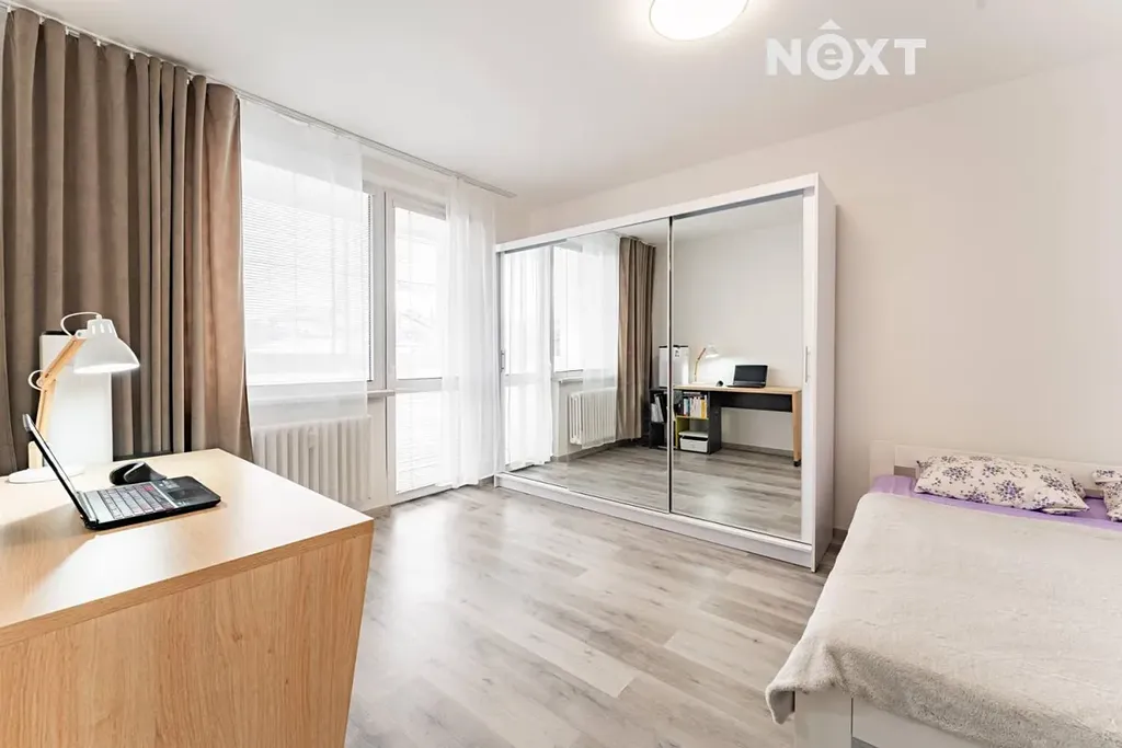 Prostorná ložnice nabízí vstup na zasklenou lodžii, kde si můžete vychutnat chvíle odpočinku a sledovat městský ruch z pohodlí domova. Koupelna s vanou je laděna do moderních šedých tónů v kombinaci s dekorem dřeva. Součástí bytu je také praktická komora, která zajistí dostatek úložného prostoru.