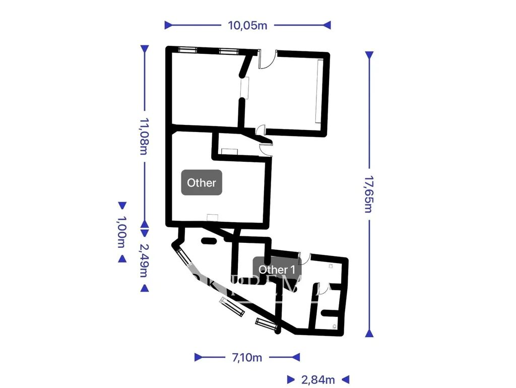 Prostory o celkové výměře 130 m² tvoří celé spodní patro domu s vlastním vstupem přímo z ulice. Dispozice nabízí čtyři průběžné místnosti s atypickým půdorysem, které lze využít jako prodejní plochu, showroom, provozovnu služeb či klientské centrum.