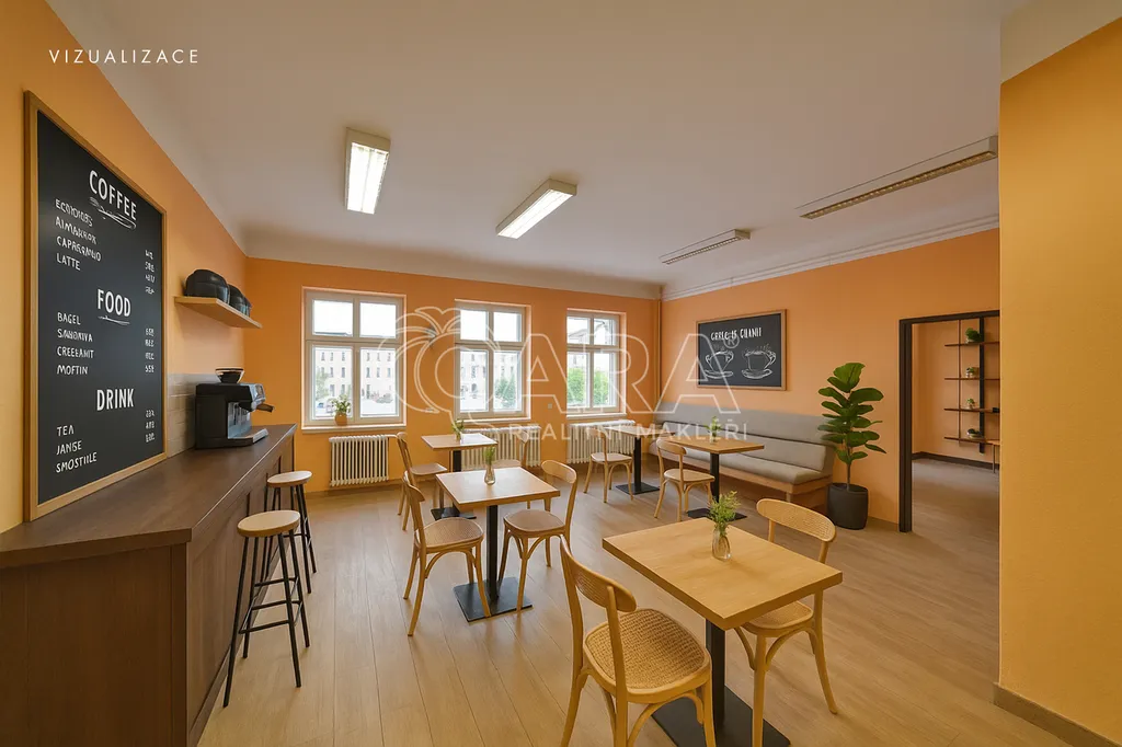 - Přímý vstup z náměstí, výborná viditelnost i frekvence lidí