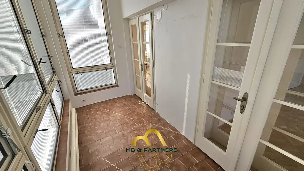 Prostor nabízí 3 neprůchozí pokoje (2 velké, jeden menší), velkou vstupní chodbu, 2 komory, koupelnu s vanou , pračkou a úložnými prostory, WC samostatné. Kuchyňská linka vybavena spotřebiči - novým sporákem s troubou, myčkou a lednicí s mrazákem. V ložnici velká šatní skříň. V dobrém technickém stavu, lze vymalovat podle svého a uzpůsobit vlastním představám. Na podlahách mix: parkety, plovoucí lamino, korek, keramická dlažba. Okna dřevěná špaletová, teď na jaře se budou měnit za nová. Přístup na zahradu lze ve shodě s dalšími třemi nájemníky domu.