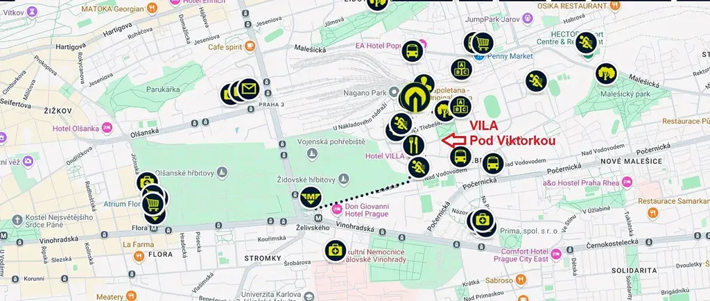 Nabízíme k pronájmu byt ve vile o dispozici 3+1 o celkové ploše 96 m2 včetně zimní zahrady (7m2) v atraktivní rezidenční lokalitě přímo u parku na Třebešíně, ul. Pod Viktorkou, Praha 10 Strašnice. Unikátní příležitost pro bydlení v žádané lokalitě, na metro and #39;A and #39; Želivského 12 min pěšky, či 6 min jednu stanici BUS z 250m vzdálené stanice Pod Třebešínem. (Jezdí každých 15 minut).