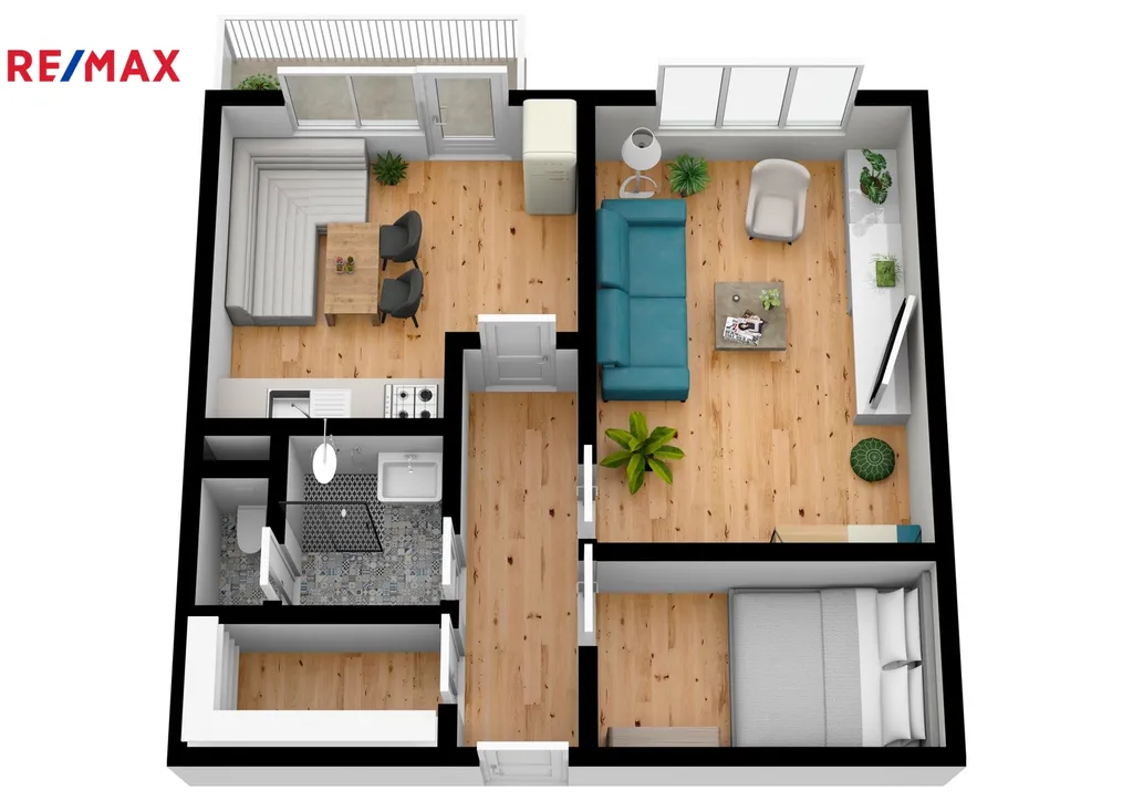 Samotný byt prošel kompletní rekonstrukcí v roce 2009 a nabízí praktickou dispozici. Byt je dispozičně řešený jako kuchyň s jídelnou ze které je vstup na lodžii, prostorný obývací pokoj, menší místnost bez oken, která může sloužit jako ložnice nebo šatna, vstupní chodba, kde vstup do komory a koupelny se sprchovým koutem společně s WC. Kuchyň je prostorná s místem pro jídelní stůl, výhodou je přímí vstup na lodžii. Obývací pokoj je dostatečně prostorný pro velký gauč a případně pracovnu nebo skříň. Pokoj bez okna je o výměře 7,76 m² a využít jde libovolně.