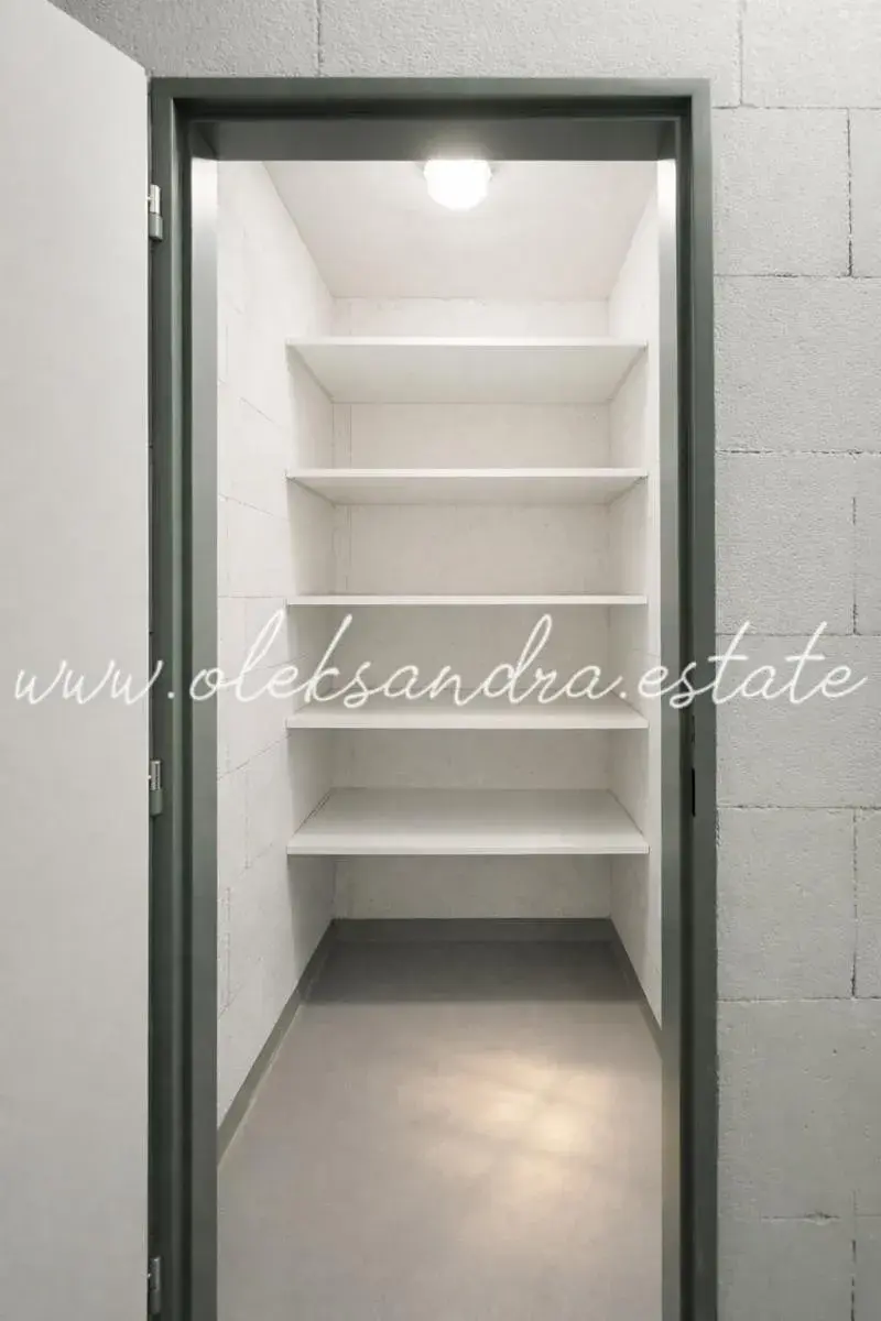 Byt je vybaven venkovními žaluziemi na všech oknech s dálkovým ovládáním, což zajišťuje maximální komfort i regulaci teploty v letních měsících. Součástí jsou také vestavěné skříně a knihovna s pracovním stolem vyrobené na míru.