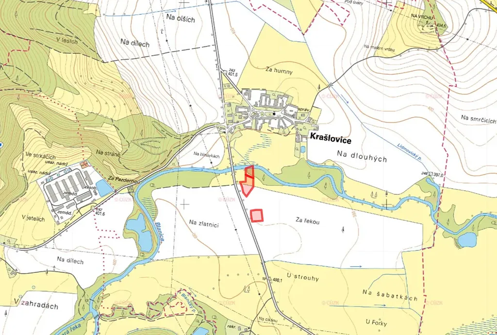 V katastrálním území Krašlovice, okres Strakonice, nabízím k prodeji soubor pozemků ve výlučném vlastnictví. Pozemky jsou zapsány na listu vlastnictví č. 306 a tvoří je celkem tři parcely.