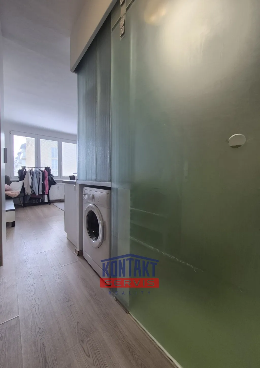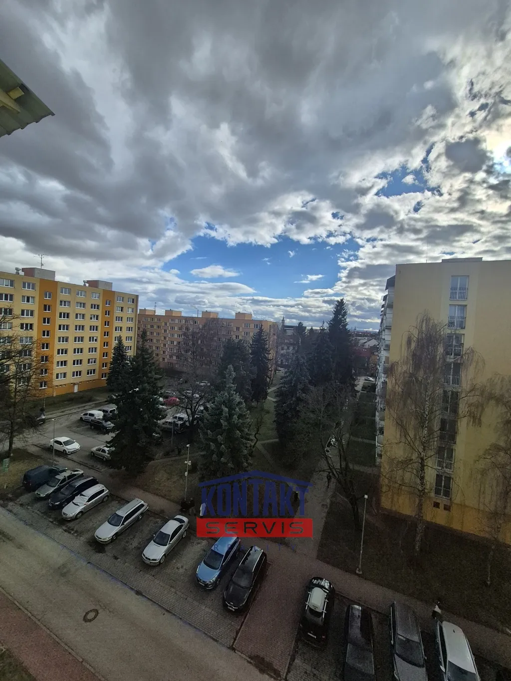 Okno je orientováno směrem na Pekárenskou ulici s výhledem do parku a na obchodní centrum IGY.