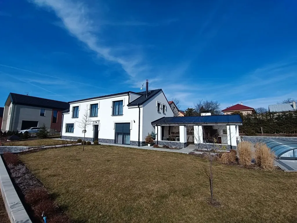 Nabízíme k prodeji novostavbu rodinného domu s venkovním bazénem, krytou pergolou s venkovní kuchyní a kompletně realizovanou zahradou včetně zpevněných ploch, oplocení a parkoviště, ve známé a žádané lokalitě, v nově vzniklé rezidenční části obce Křížkový Újezdec, 10 km od hranice Prahy 4.