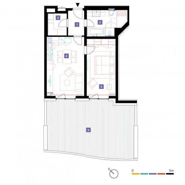 Krásný byt o dispozici 2+kk (byt č. 620) s terasou a výhledem ze 6. patra moderní budovy. Byt je kompletně zařízený a naleznete v něm tedy veškerý nábytek a vybavení. V koupelně vás jistě potěší příjemné podlahové vytápění a moderní sprchový kout walk-in i vana Internet v bytě je zahrnut v ceně služeb.