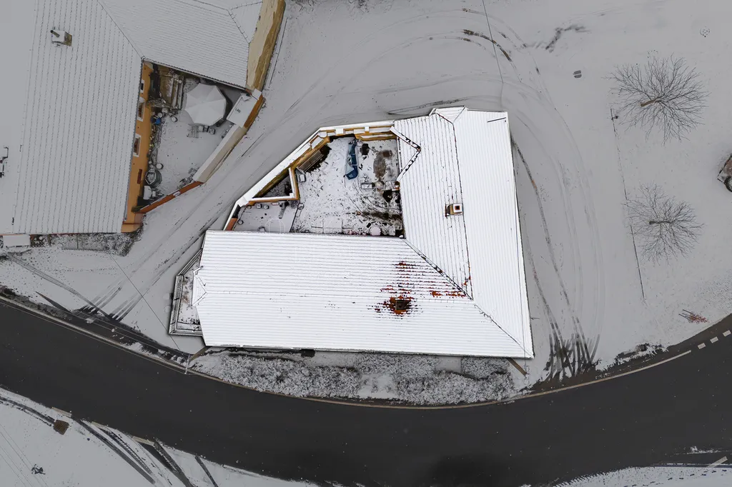 K dispozici je i příslušenství domu - dřevník s technickou místností a garáž pro jedno vozidlo. Co se týká inženýrských sítí, dům je napojen na vodovod a elektřinu.