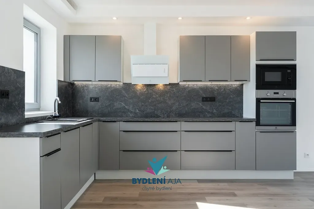 Tepelné čerpadlo, podlahové topení, moderní kuchyňská linka s prémiovými spotřebiči ELEKTROLUX.