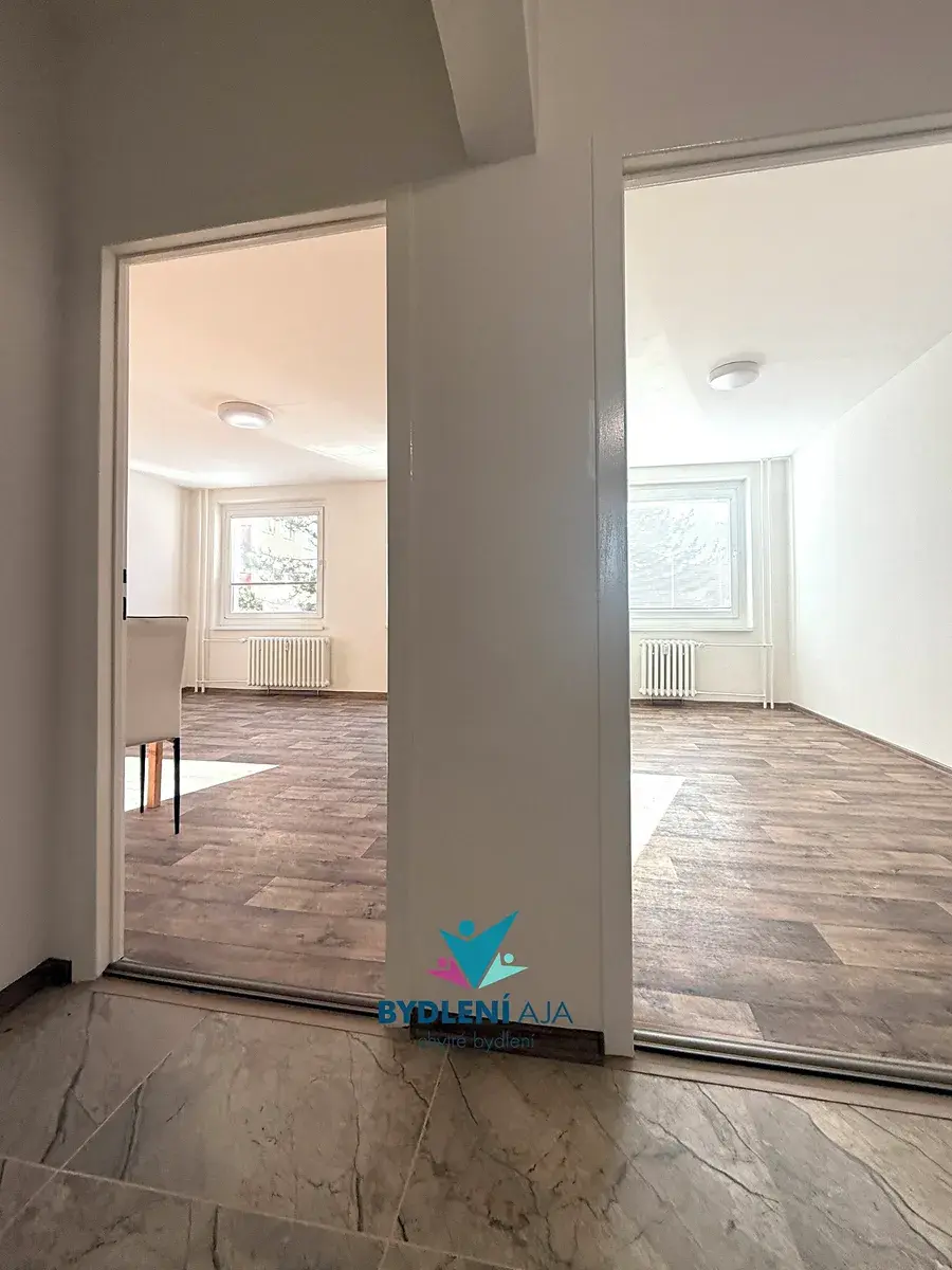 V celém bytě jsou nové plovoucí podlahy, nové dveře, vestavěná skříň a prakticky řešená, plně vybavená předsíň.