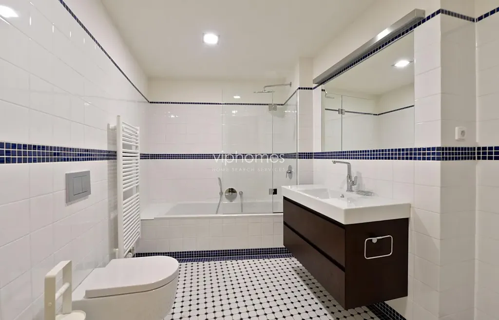 Původní architektonická ornamentace, vysoké stropy, dřevěné parkety, štuky. K vybavení patří vestavěné skříně, zatemňovací rolety v ložnicích, pračka, myčka