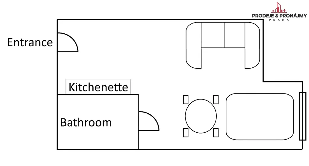 1× garsonka / studio (cca 35 m²)