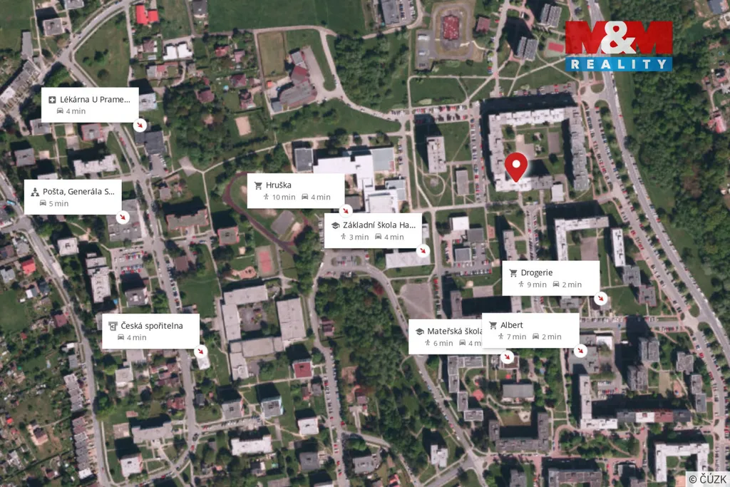Výhodou je také dostatek parkovacích míst v okolí domu.