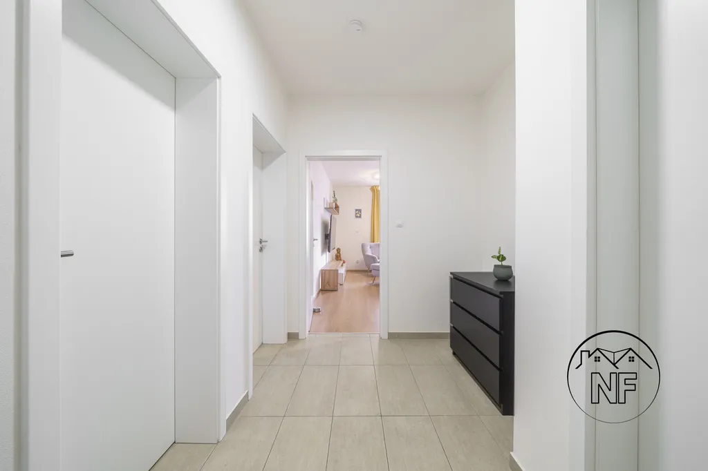 Byt je umístěný v 1. patře s přímým vstupem na terasu a předzahrádku o výměře 83 m. Zaujme čistým moderním pojetím, vysokým komfortem bydlení a promyšlenou dispozicí vhodnou jak pro mladou rodinu, tak pro starší pár hledající klid a pohodlí, případně i bezbariérové řešení včetně parkování. Součástí bytu jsou dvě garážová stání umístěná vedle sebe, ideální pro dvě vozidla nebo komfortní parkování bez nutnosti manévrování.
