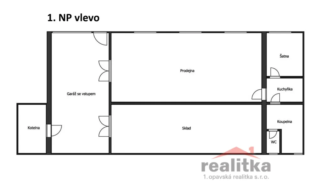 Obchodní jednotka sestávající z prostorné prodejny, kanceláře, kuchyňky, koupelny, WC, skladu, garáže a kotelny.