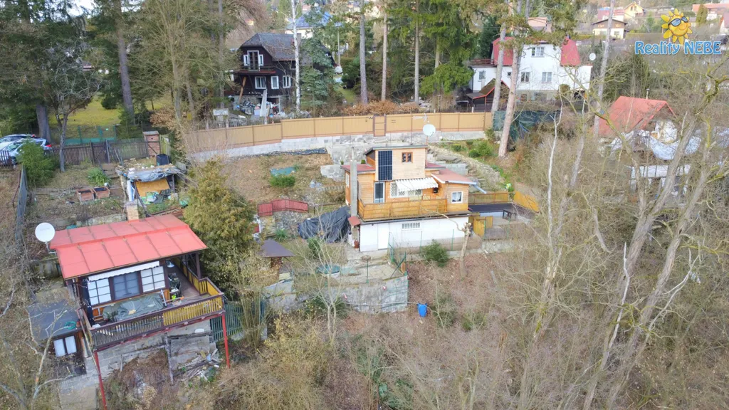Prodej celoroční chaty 56m2 u Jílové u Prahy v klidné části obce Luka pod Medníkem určené k rekreaci. Chata se zastavěnou plochou 56m2 je na svažitějším obecním pozemku 107m2, je z poloviny zděná. Dispozice chaty: